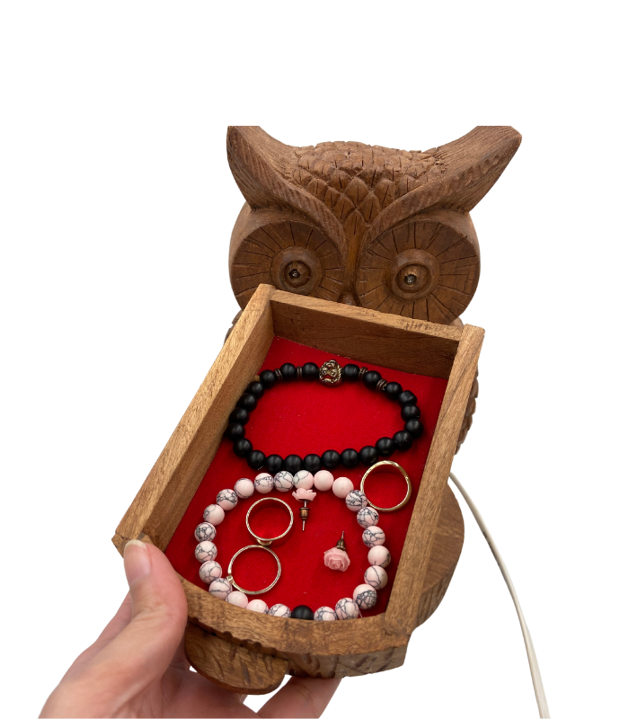 Handmade Wooden Owl Night Lamp – a beautifully hand-carved multipurpose night lamp with jewelry storage. This unique keepsake box makes a perfect housewarming gift and a thoughtful gift for her. A charming blend of functionality and artistry for any space. 💝✨